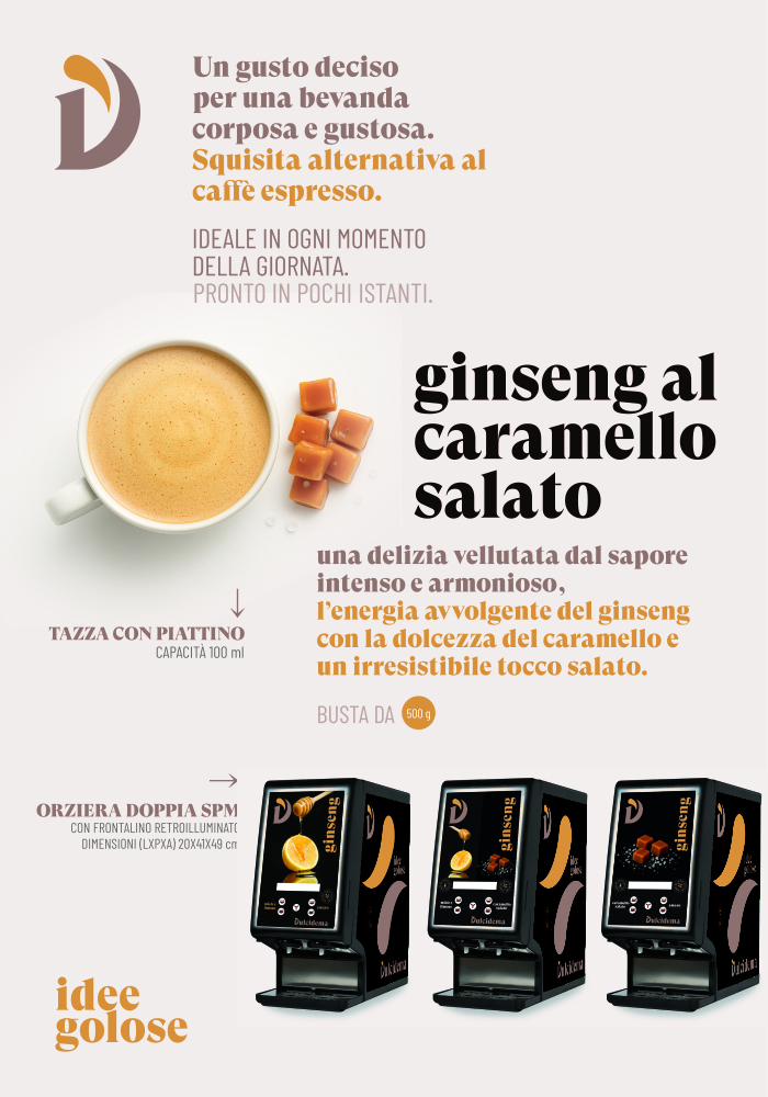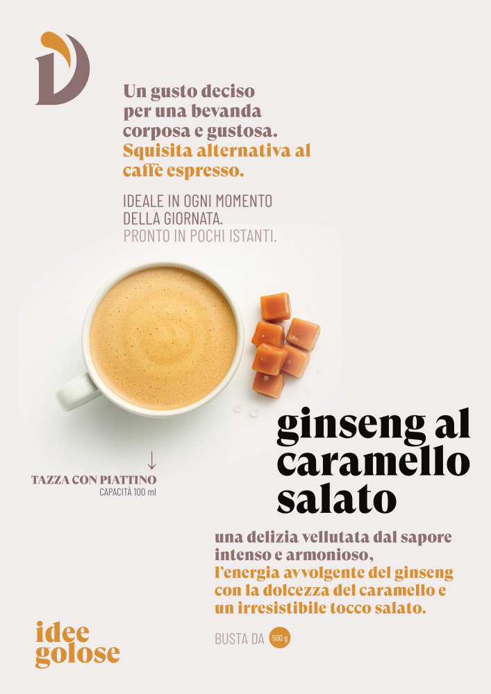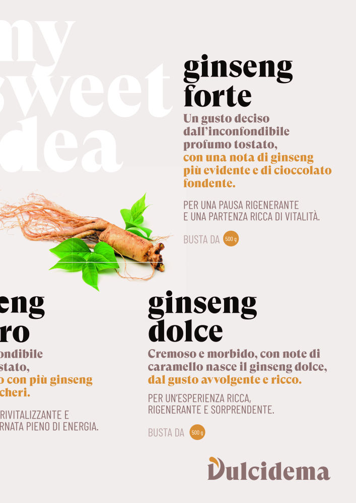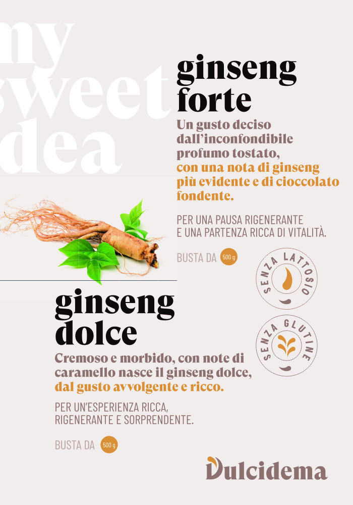 Il gusto avvolgente e ricco del Ginseng dolce dalle cremose e morbide note di caramello.